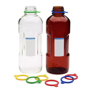 Agilent의 HPLC 이동상 보틀은 InfinityLab Stay Safe 캡과 가장 완벽하게 맞아 용매 증기의 증발을 차단합니다.