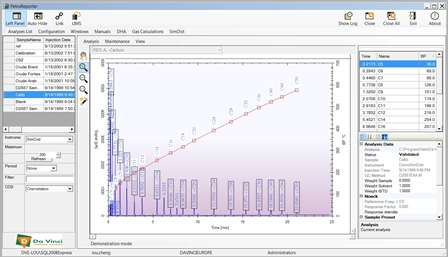 The DVLS PetroReporter is a universal software tool that automates data processing of petroleum samples. After data processing PetroReporter creates the required SimDist reports. Some examples are: Alkane profile report, cut point distribution report, distillation reports and correlation reports.